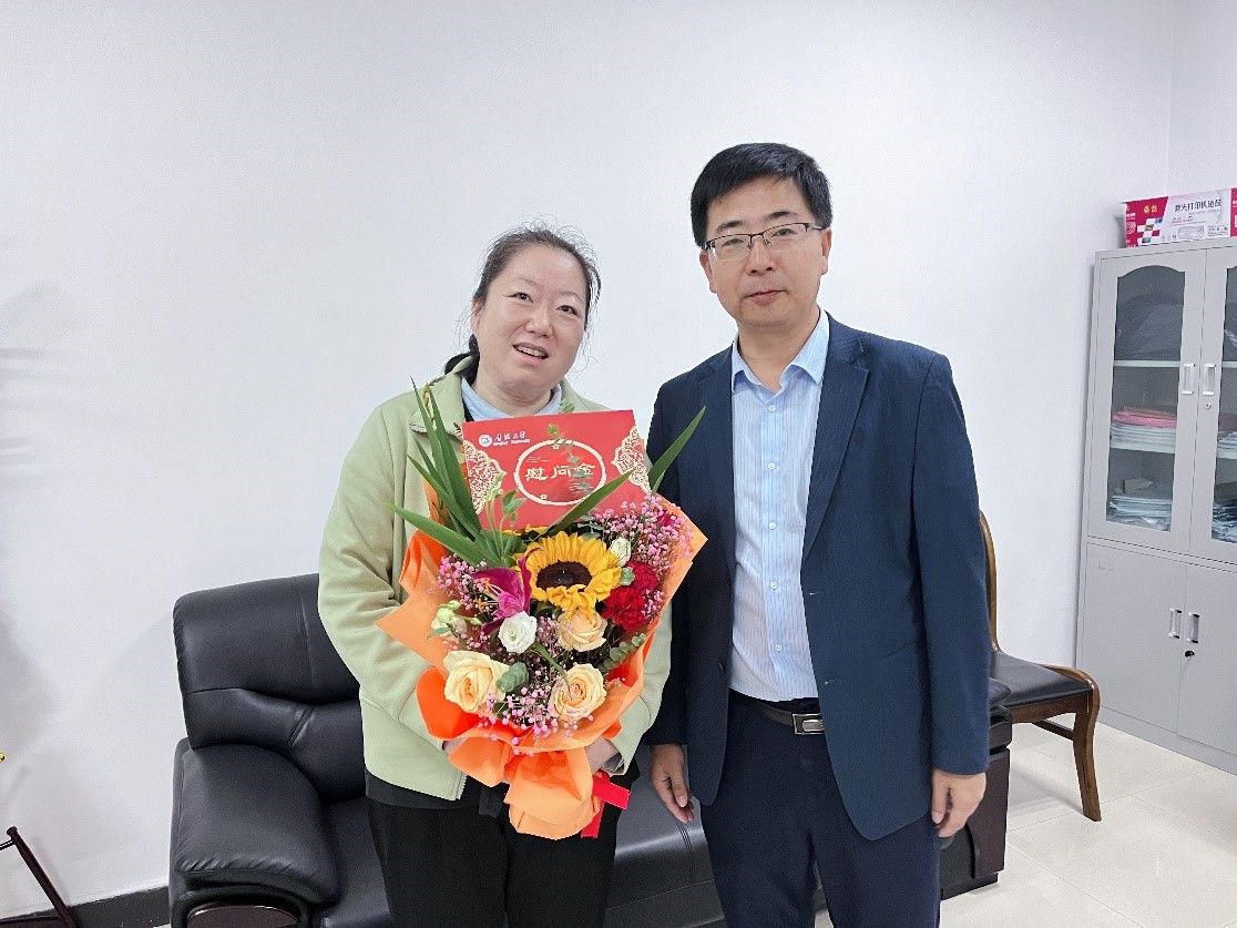 任延明副校长首先代表校党委向一直在教学一线工作的王一琳老师表达了节日的问候和祝福,对王老师多年来的辛勤工作表达了感谢,对王老师的工作情况和身体康复情况进行了详细了解,叮嘱王老师注意复查、保重身体,有困难及时向学院和学校反映。王一琳老师对学校一直以来的关心、帮助表达了诚挚的谢意,表示会在校党委的亲切关怀下继续奋战在教学一线,努力为学校的发展做出自己的贡献。