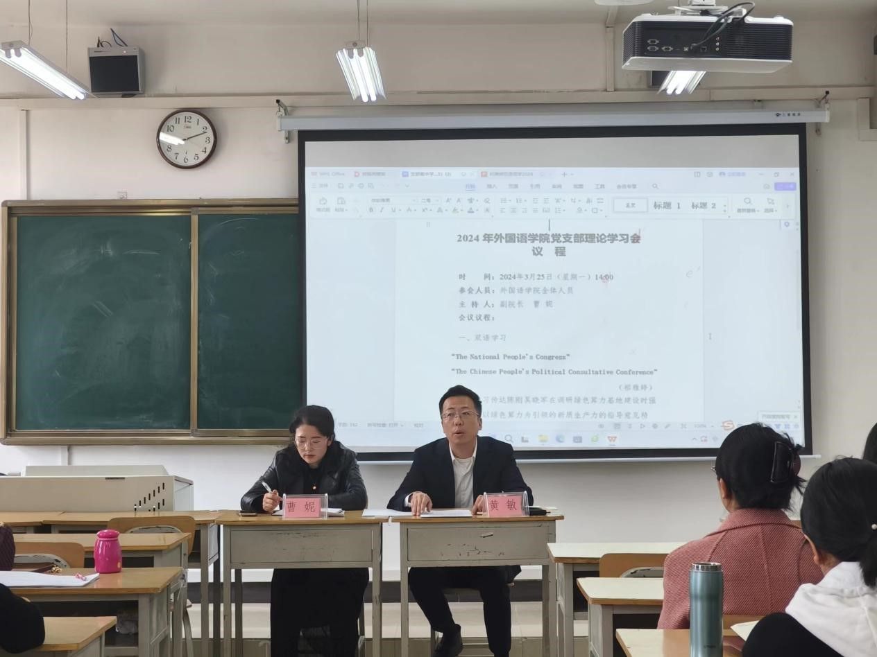 会议强调,新质生产力特点是创新,关键在质优。要认真学习领会新质生产力的核心要义和丰富科学内涵,结合学院发展重点工作,加快推进学科建设、人才引进、大学英语教学改革等,充分发掘“外语+”“+外语”发展新动能新优势,为学校“双一流”创建贡献更多外院智慧和力量。
