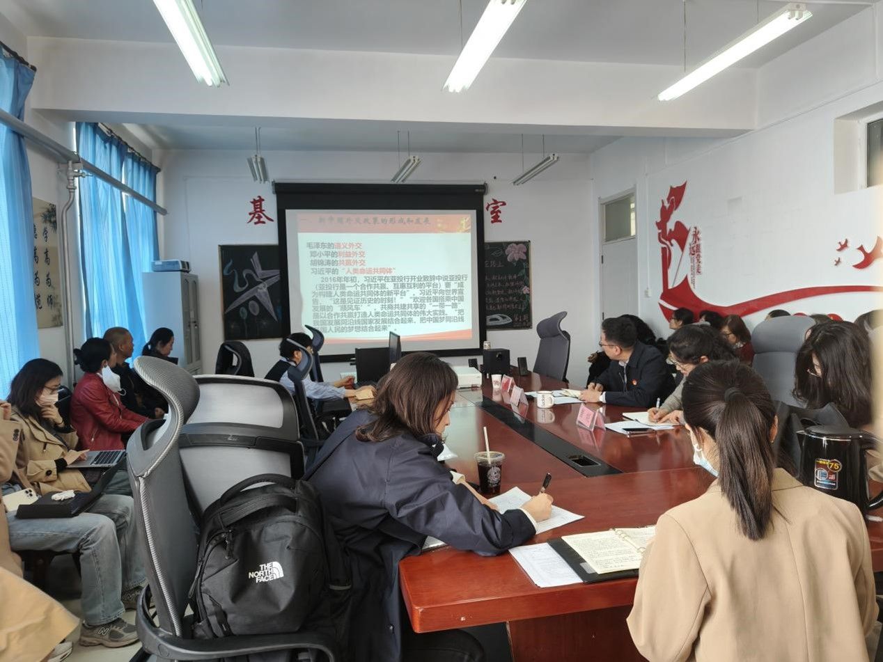 马克思主义学院和东红教授做了以“习近平外交思想”为主题的专题讲座。和教授以习近平外交思想、中国外交政策发展为主线,从坚定奉行独立自主的和平外交政策、坚持维护国家主权和国家核心利益、推动共建人类命运共同体走深走实等方面展开,针对国际冲突问题、大国博弈等方面的事例,阐明了“百年未有之大变局”中世界之变、时代之变、历史之变正以前所未有的方式展开,为大家详细讲解了当今中国正处于什么样的国际形势,以及面对复杂严峻的国际环境开展的习近平外交思想工作。与会党员和教师对中国外交政策的发展有了更深刻的认识,纷纷表示,要多创造机会聆听精彩讲座。