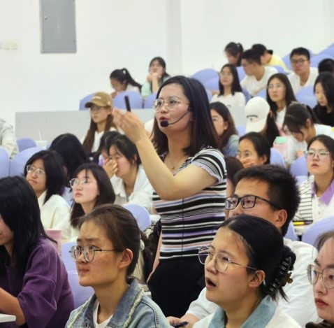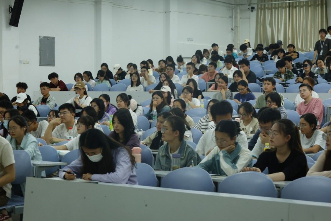 讲座邀请了在四六级考试中取得优异成绩的“师姐”为大家分享了自己的备考经验,深受学生欢迎。最后,同学们就考试准备、词汇积累、备考策略等与主讲老师和 “师姐”进行了深入的交流。讲座现场学生互动热烈、气氛活跃,体现出学生的学习热情以及对四六级考试辅导的热切需求。