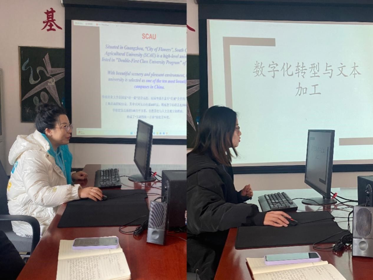 教师队伍的专业素养与教学能力,聚焦教师数字素养的提升,组织参训教师分享“面向生成式人工智能”教研能力提升研修成果。参训教师从“新形态外语教材与教法研究”、阅读教学与写作教学的“数字化转型与文本加工”以及教研AI工具三个方面,与大家开展了交流。会议强调,教师应积极将AI技术和外语教学有机结合,不断提升自身信息化素养。同时,教师应注重学生信息化素养及批判性思维能力的培养。