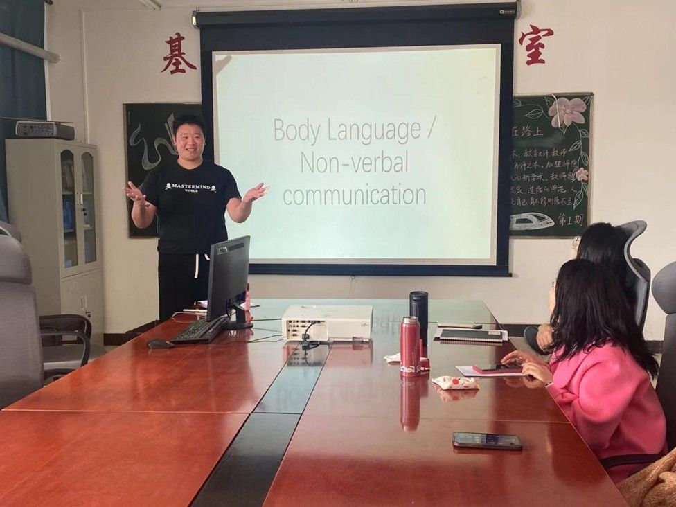 会议第二部分邀请外籍教师Charles Chang Liu 以 “Body Language/Non-verbal Communication”为主题,开展了教研室活动。Charles Chang Liu指出在英语沟通交流中,body language(肢体语言)起着至关重要的作用,它能够增强语言表达的清晰度和感染力,帮助传递情感、态度和意图,使交流更加生动、自然。同时,外籍教师组织了丰富的互动活动,让全体教师在互动中促进跨文化理解,增强沟通效果,提升交流的效率和质量。