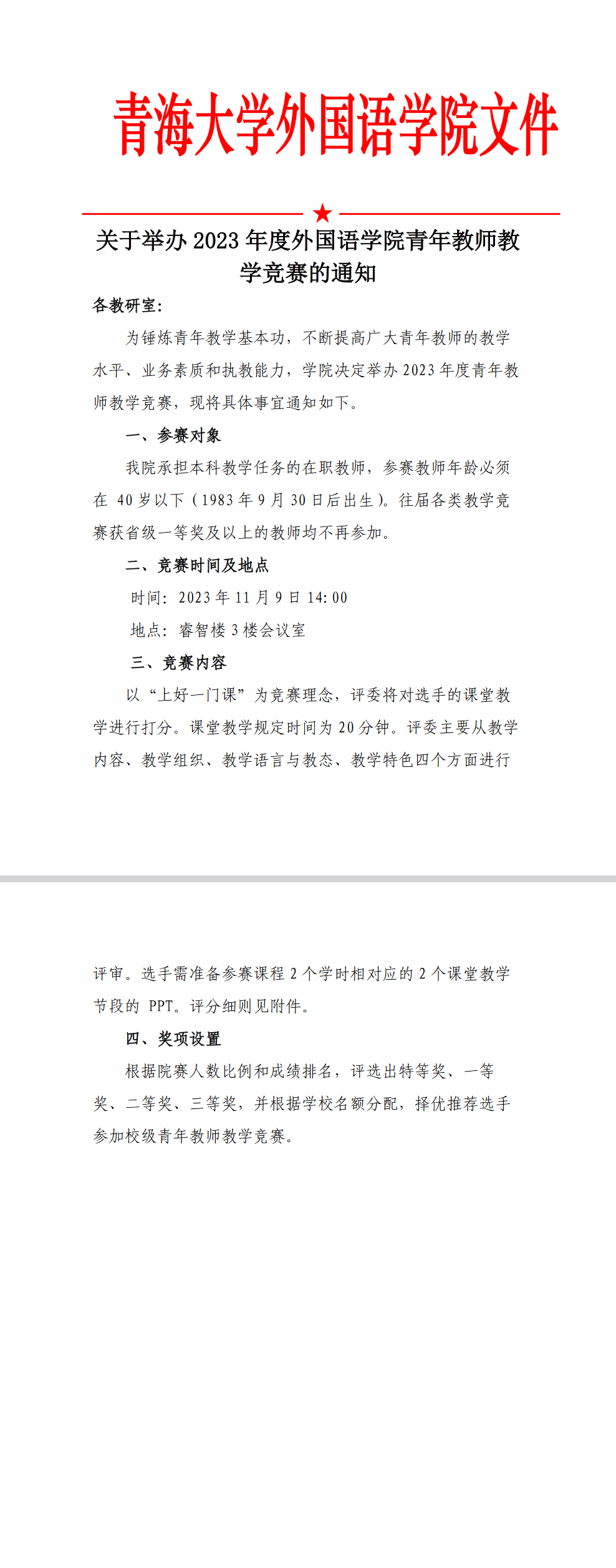 关于举办2023年度海角论坛 青年教师教学竞赛的通知