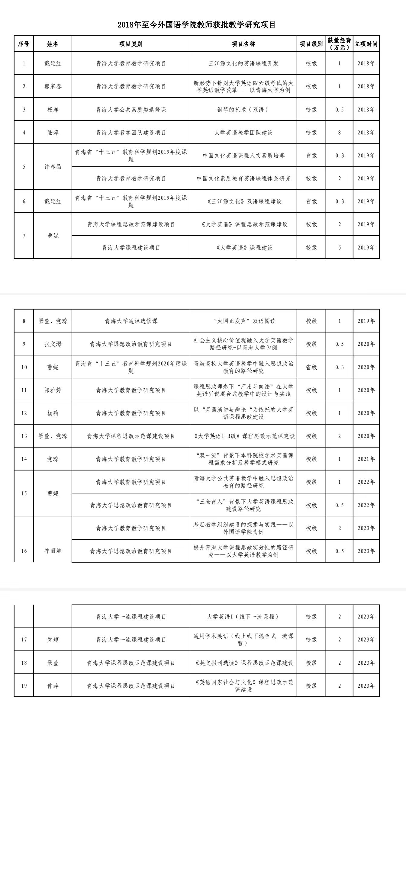教学研究情况统计