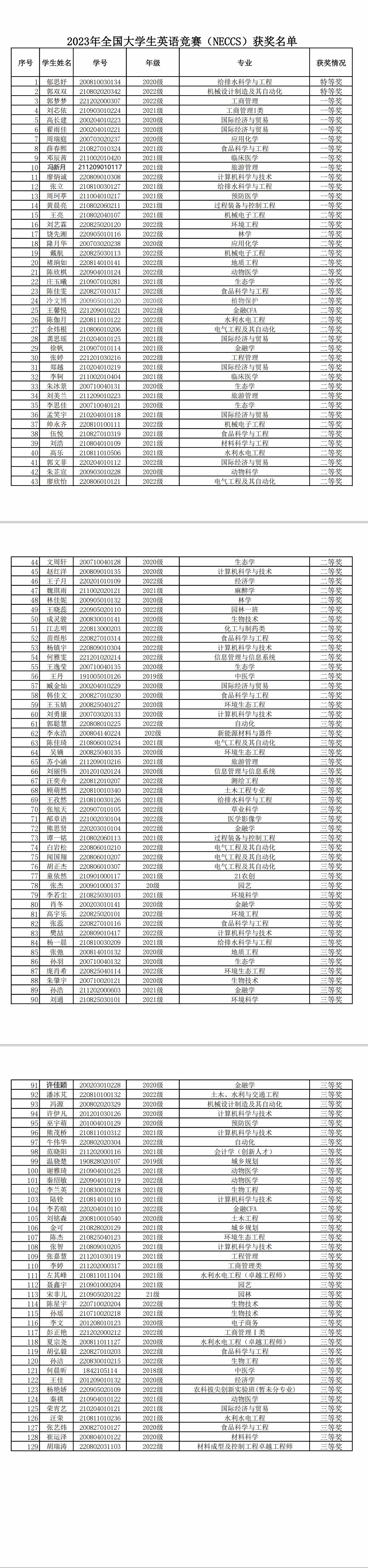 2023年全国大学生英语竞赛(NECCS)获奖名单