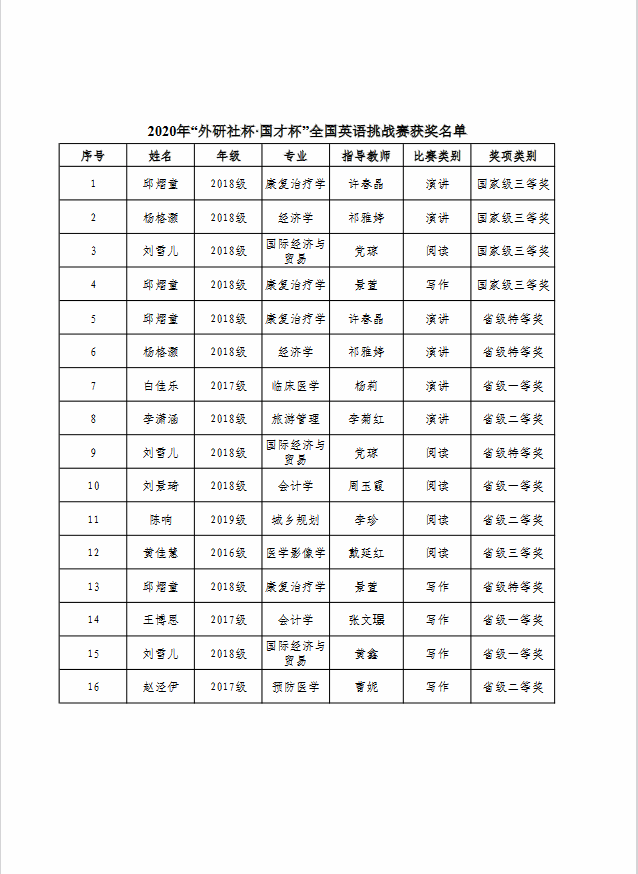 2020年外研社比赛获奖名单